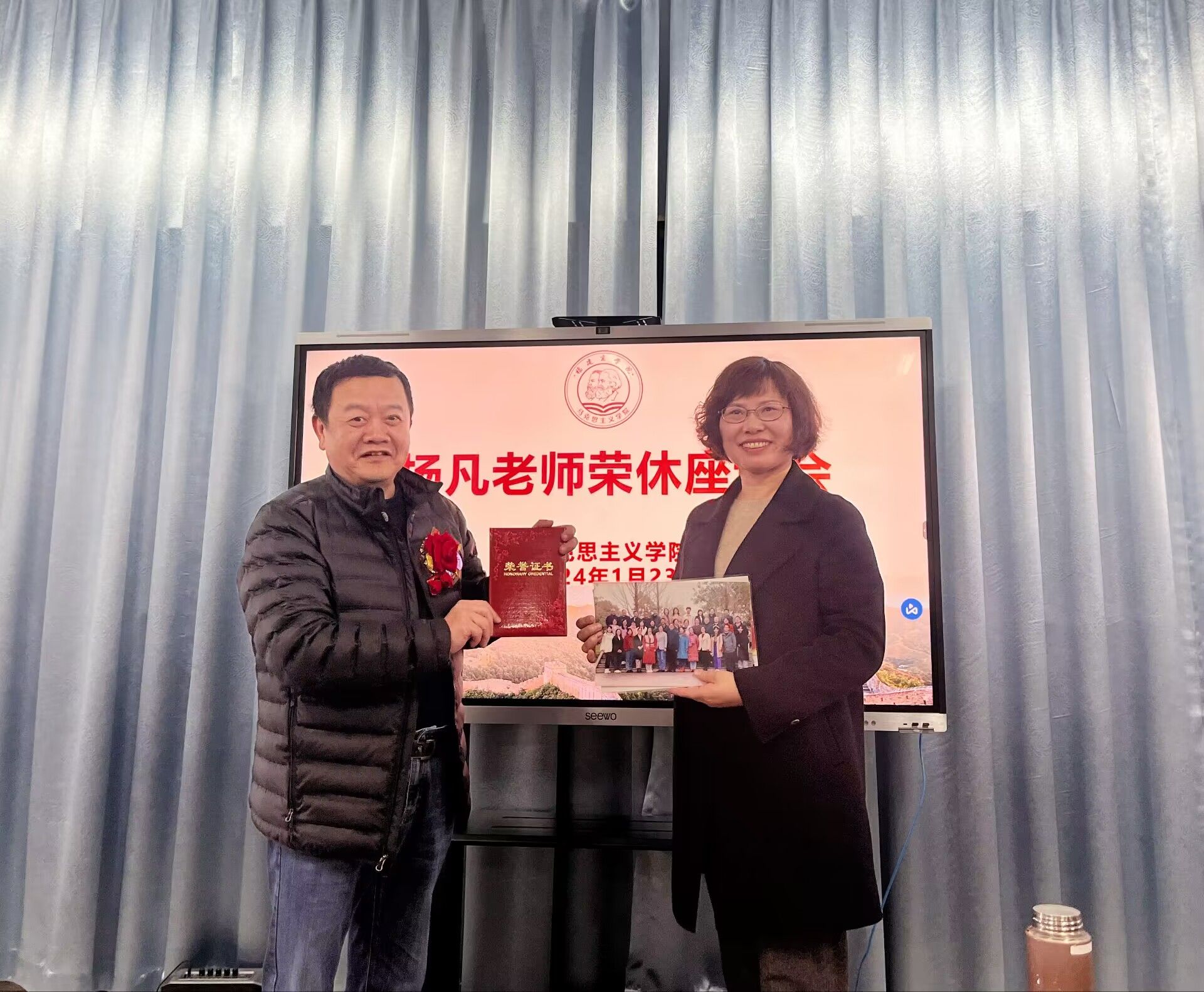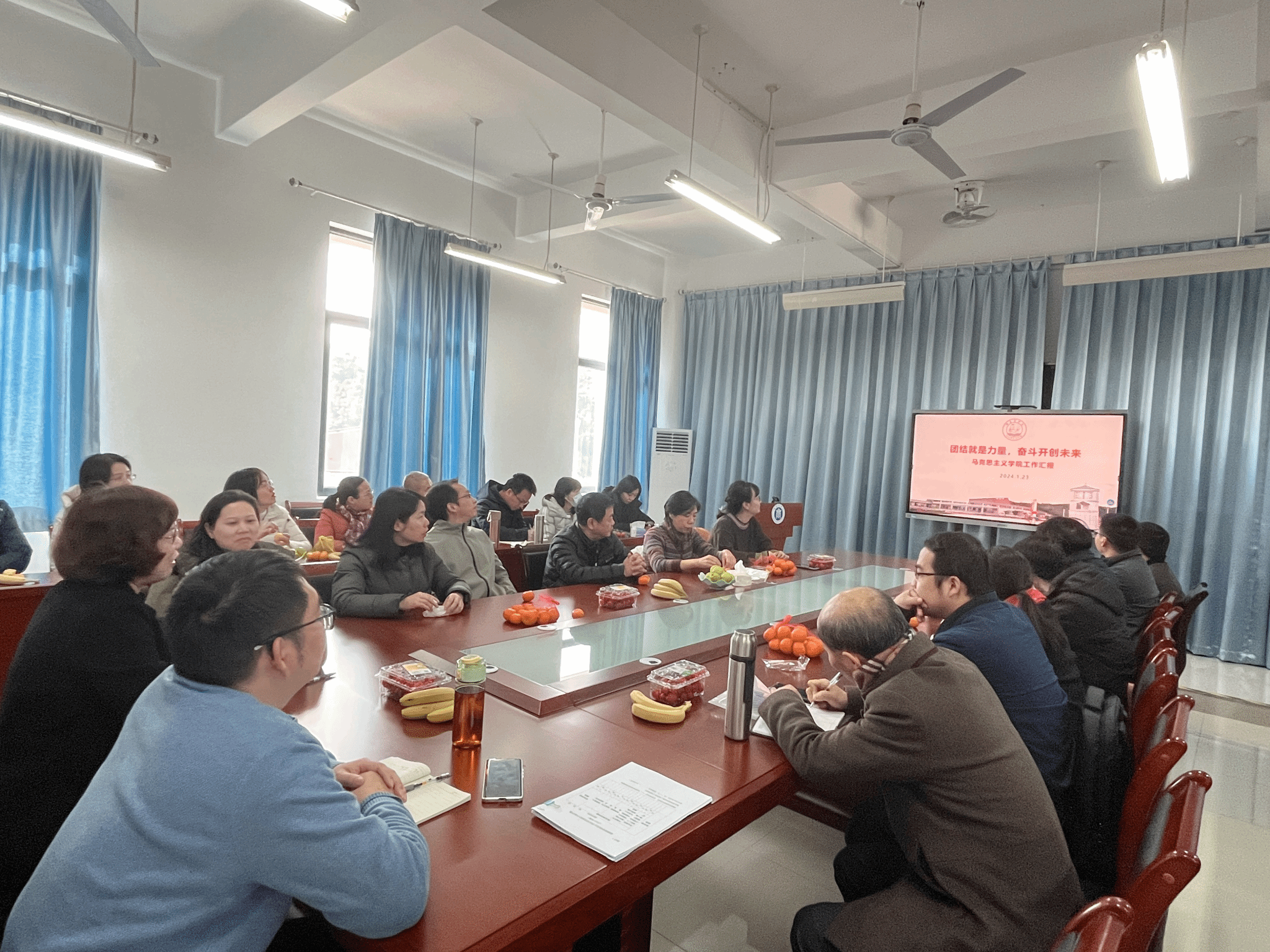 2024年1月23日下午,太阳官网召开本学期期末工作安排会议暨杨凡老师荣休欢送会。太阳集团官网全体教师参加。