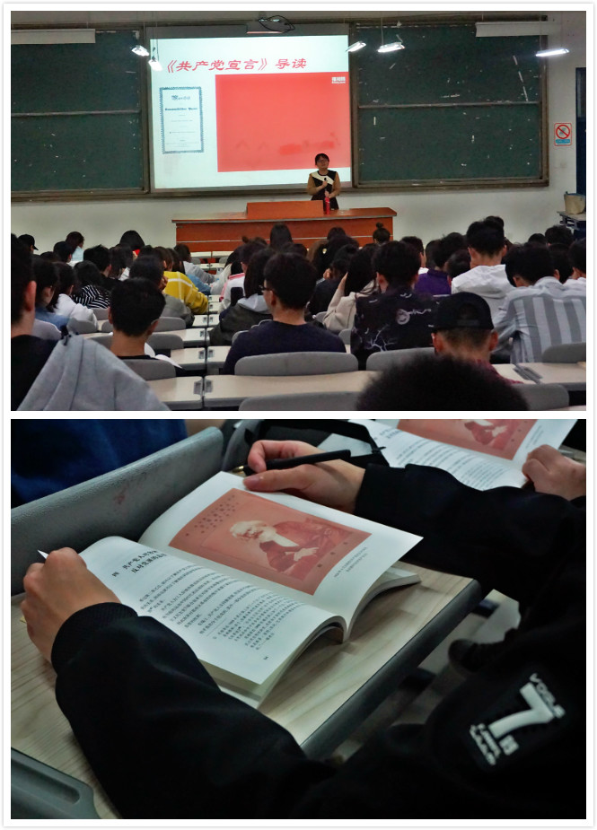 历史车轮滚滚向前,时代潮流浩浩荡荡。2018年是马克思诞辰200周年,是《共产党宣言》发表170周年。振叶寻根、观澜索源,为帮助我校马克思主义理论读书社社员们更好不忘初心品经典,坚定信念向前进。2018年3月29日晚,我社邀请了太阳集团官网黄玮老师于连江校区诚信楼大阶一为读书社一班社员作了“《共产党宣言》导读”的专题讲座。